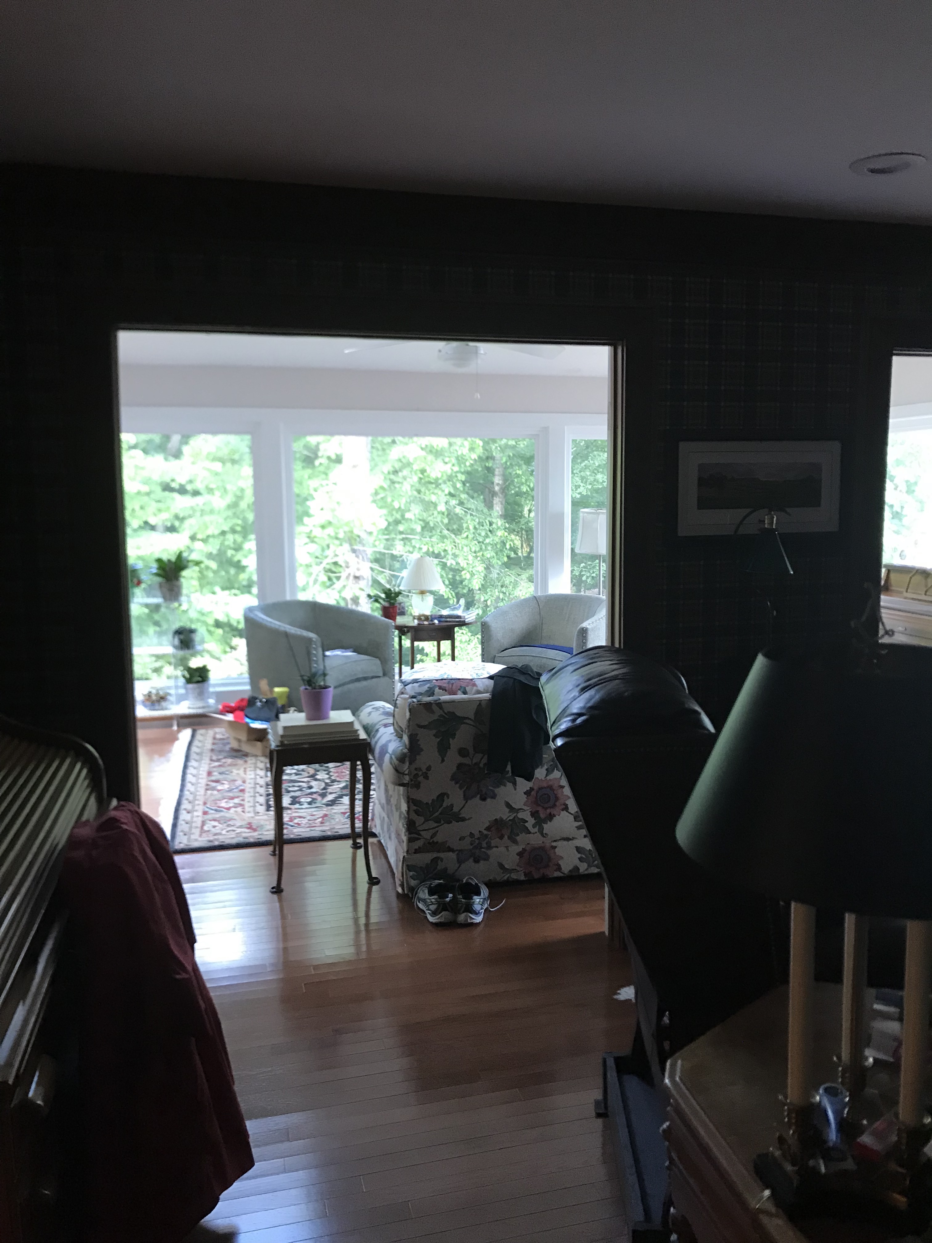 Overall, the new downstairs provides an open layout with full visibility from the kitchen to the den, sunroom, and music room with updated finishes and lighting.